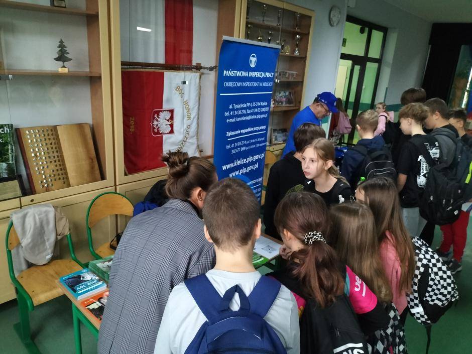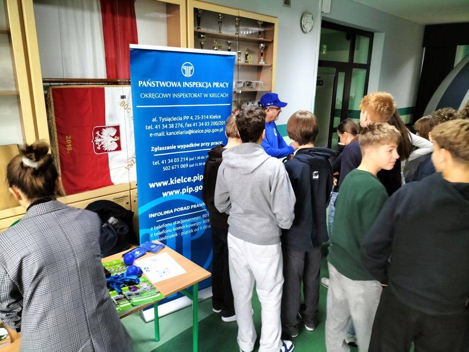 10 grudnia 2025 r. byliśmy w szkole Podstawowej w Daleszycach, gdzie byliśmy współorganizatorami "Dnia Doradztwa Zawodowego". Inspektor pracy przeprowadził wykłady dla uczniów ostatnich klas, a pracownicy zorganizowali i poprowadzili stoisko promocyjno - informacyjne na korytarzu szkoły, na którym podczas przerw uczniowie mogli otrzymać wydawnictwa PIP oraz gadżety a także uzyskać informacje o działalności Okręgowego Inspektoratu Pracy w Kielcach. Współorganizatorami byli Komenda Wojewódzka OHP w Kielcach, Towarzystwo Przyjaciół Ziemi Daleszyckiej oraz Szkoła Podstawowa w Daleszycach.