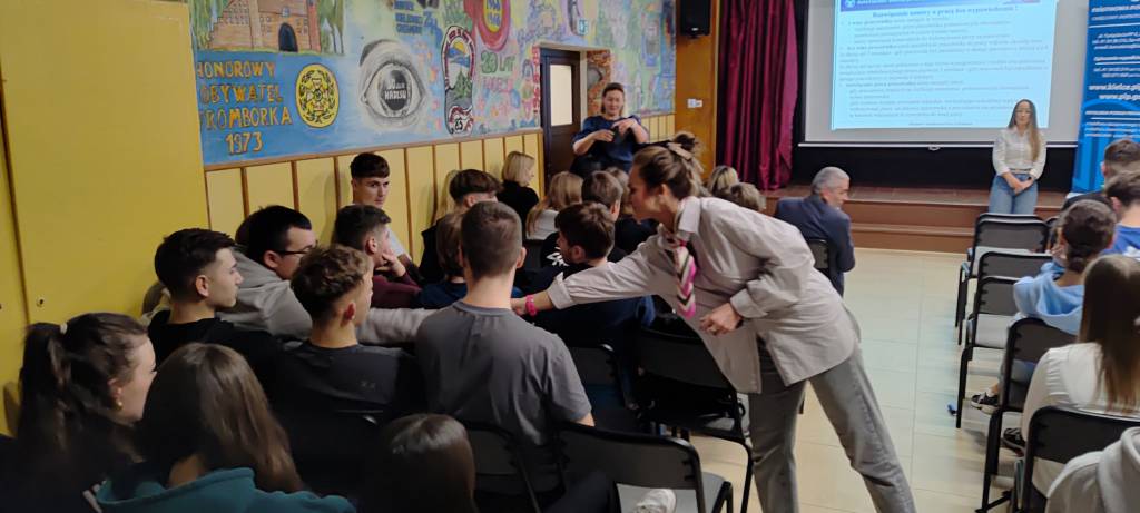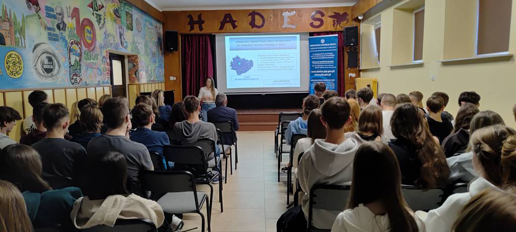 23 października 2025 r. w Liceum Ogólnokształcącym im. Marii Curie-Skłodowskiej w Kazimierzy Wielkiej odbyło się szkolenie dla młodzieży w ramach programu „Kultura Bezpieczeństwa”. Inspektor pracy dr Izabela Wojarska omówiła zagadnienia prawa pracy, zwracając szczególną uwagę na zapisy dotyczące zatrudniania pracowników młodocianych. Celem szkoleń jest zwiększanie świadomości prawnej młodzieży oraz przygotowanie osób stojących u progu kariery zawodowej do praktycznych aspektów zatrudnienia.