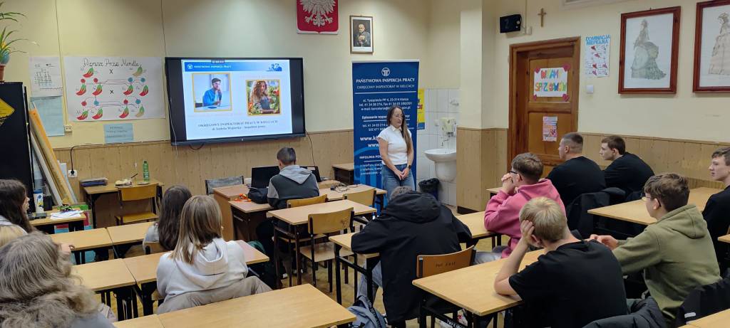 8 października 2025 r. w Zespole Szkół Ponadpodstawowych nr 2 w Końskich odbyło się szkolenie w ramach programu „Kultura Bezpieczeństwa”. Inspektor pracy dr Izabela Wojarska omówiła zagadnienia prawa pracy, zwracając szczególną uwagę na zapisy dotyczące zatrudniania pracowników młodocianych. Celem szkoleń jest zwiększanie świadomości prawnej młodzieży oraz przygotowanie osób stojących u progu kariery zawodowej do praktycznych aspektów zatrudnienia.