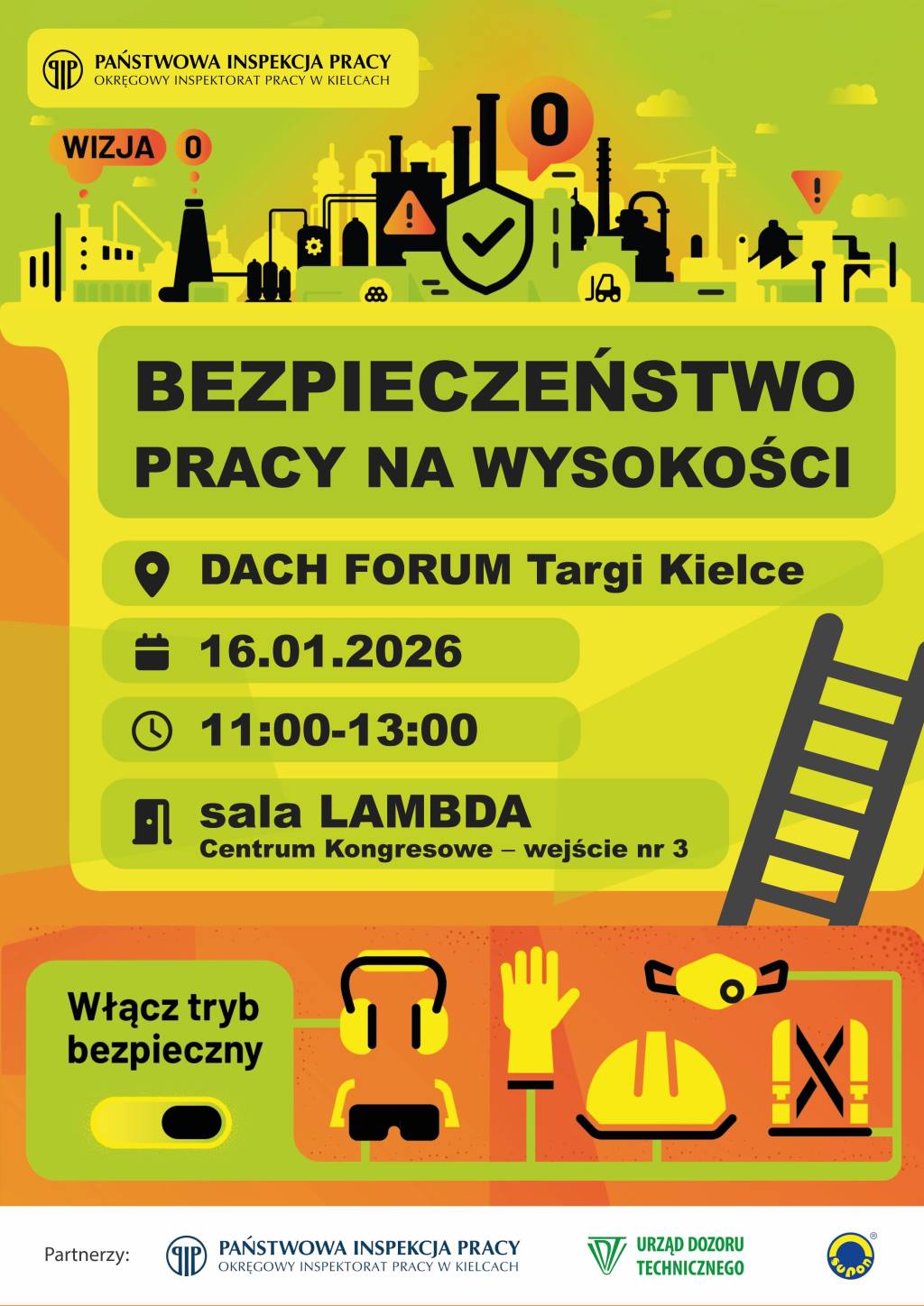 Zapraszamy na bezpłatne seminarium pt. "Bezpieczeństwo pracy na wysokości", które odbędzie się 16 stycznia 2026 r. podczas Dach FORUM w Targach Kielce. Prelekcje poprowadzą eksperci z Państwowej Inspekcji Pracy, Urzędu Dozoru Technicznego oraz przedstawiciele branży.