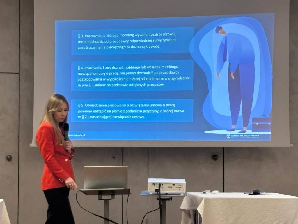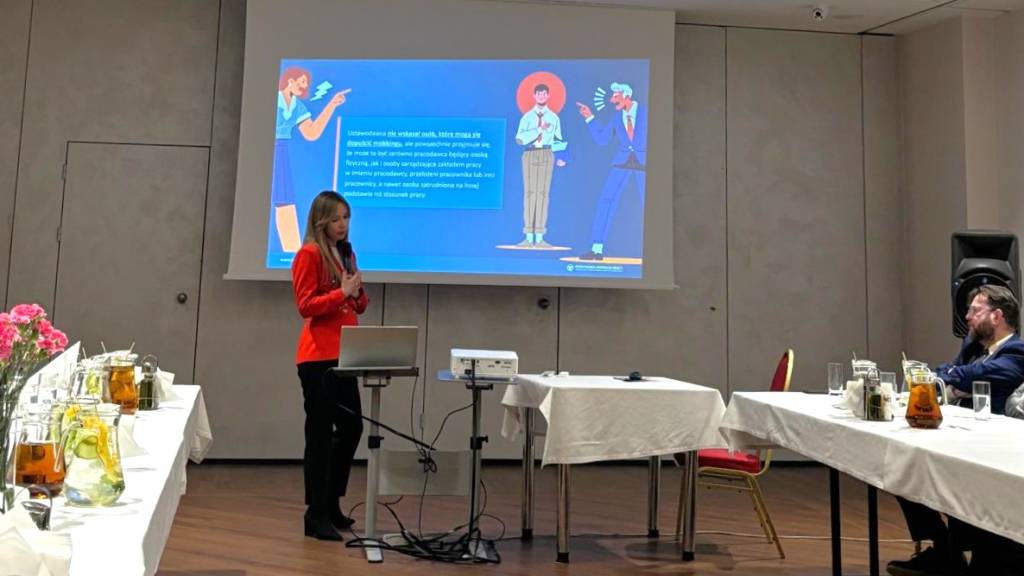 Podczas prezentacji uczestnicy zadawali liczne pytania dotyczące m.in. mobbingu ze strony przełożonych, sposobów jego przeciwdziałania oraz granicy między mobbingiem a negatywną oceną pracy. Dzielili się także własnymi doświadczeniami i przykładami sytuacji, które miały miejsce w ich firmach.