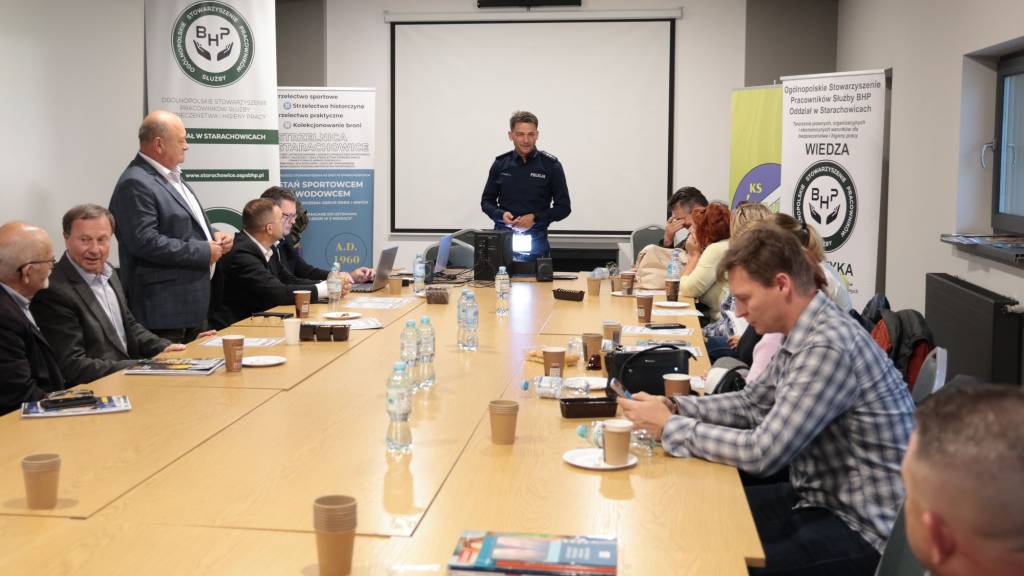 26 września 2025 r. w Starachowicach odbyło się szkolenie „Strzał w Bezpieczeństwo – Dzień Służby BHP 2025” zorganizowane przez Oddziały Ogólnopolskiego Stowarzyszenia Pracowników Służby BHP (OSPSBHP) w Starachowicach, Kielcach i Radomiu z okazji przypadającego na 19 września Dnia Służby BHP. Nadinspektor Tomasz Barański przeprowadził szkolenie na temat wypadków przy pracy oraz błędów przy sporządzaniu dokumentacji powypadkowej. Podporucznik Wojsk Obrony Terytorialnej Jacek Pytlarz przeprowadził szkolenie z zakresu medycyny pola walki, omówił zasady udzielania pierwszej pomocy w warunkach pokoju oraz zagrożenia zbrojnego. Szczególną uwagę poświęcono zagadnieniom związanym z przygotowaniem ludności cywilnej do ewakuacji w sytuacji zagrożenia. Rzecznik Prasowy Komendy Powiatowej Policji w Starachowicach Paweł Kusiak omówił „Poradnik bezpieczeństwa” dostępny w serwisie Rzeczpospolitej pod adresem www.gov.pl . W szkoleniu z obsługi broni oraz zasad bezpieczeństwa związanych z jej używaniem wzięli udział chętni uczestnicy szkolenia.