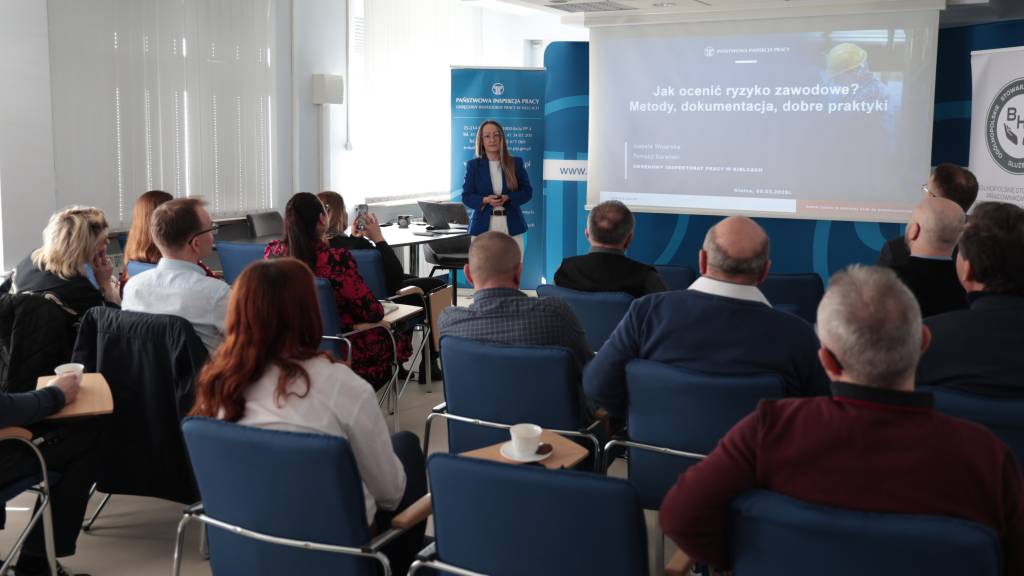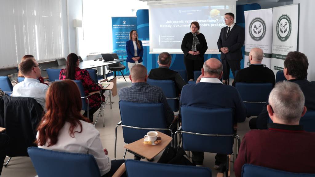 Podczas spotkania inspektorzy pracy przedstawili zagadnienia związane z prawidłową oceną ryzyka zawodowego. W trakcie szkolenia omówione zostały m.in.: