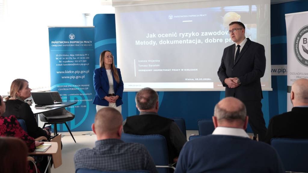 5 marca 2026 r. w siedzibie Okręgowego Inspektoratu Pracy w Kielcach odbyło się kolejne szkolenie w ramach Akademii Bezpieczeństwa dla członków Ogólnopolskiego Stowarzyszenia Pracowników Służb BHP Oddział Kielce, Starachowice, Końskie.