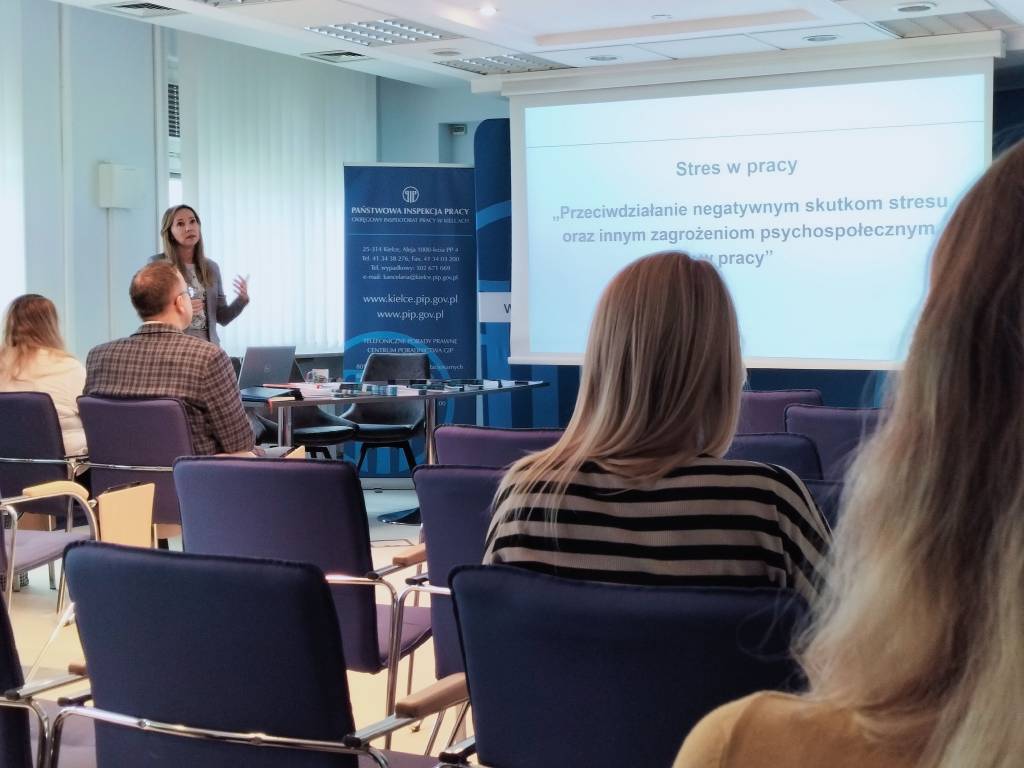 7 października 2025 r. odbyło się kolejne szkolenie w ramach cyklu „Akademii Bezpieczeństwa" organizowanej dla członków Ogólnopolskiego Stowarzyszenia Pracowników Służby BHP. Tym razem Kamila Pawłowska - starszy inspektor pracy, psycholog omówiła słuchaczom problematykę stresu w pracy oraz wypalenia zawodowego. Szkolenie to wpisuje się w promocję zagadnień dotyczących przeciwdziałania zagrożeniom psychospołecznym w miejscu pracy - podkreślił podczas spotkania Tomasz Stanie c zastępca okręgowego inspektora pracy, zapraszając jednocześnie na konferencję „Zagrożenia psychospołeczne w środowisku pracy - jak rozpoznawać, przeciwdziałać, pomagać ", która odbędzie się już 17 października.