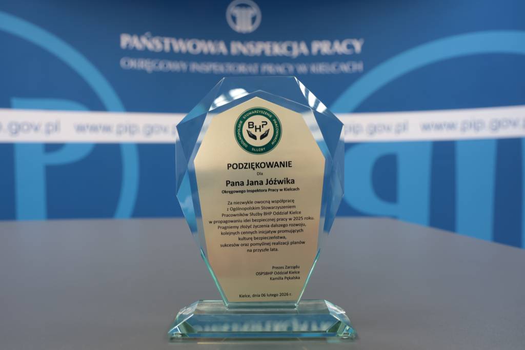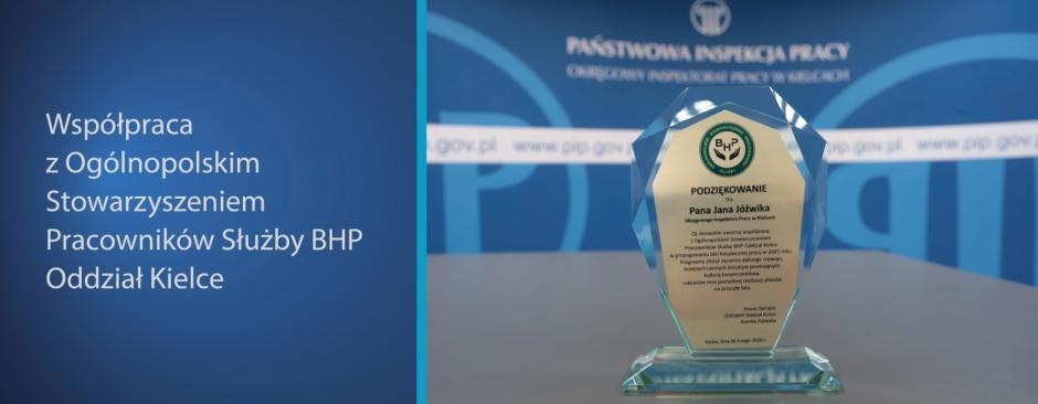 Dziękujemy Ogólnopolskiemu Stowarzyszeniu Pracowników Służb BHP Oddział w Kielcach za docenienie naszej współpracy w realizacji zadań na rzecz poprawy bezpieczeństwa pracy w 2025 roku.